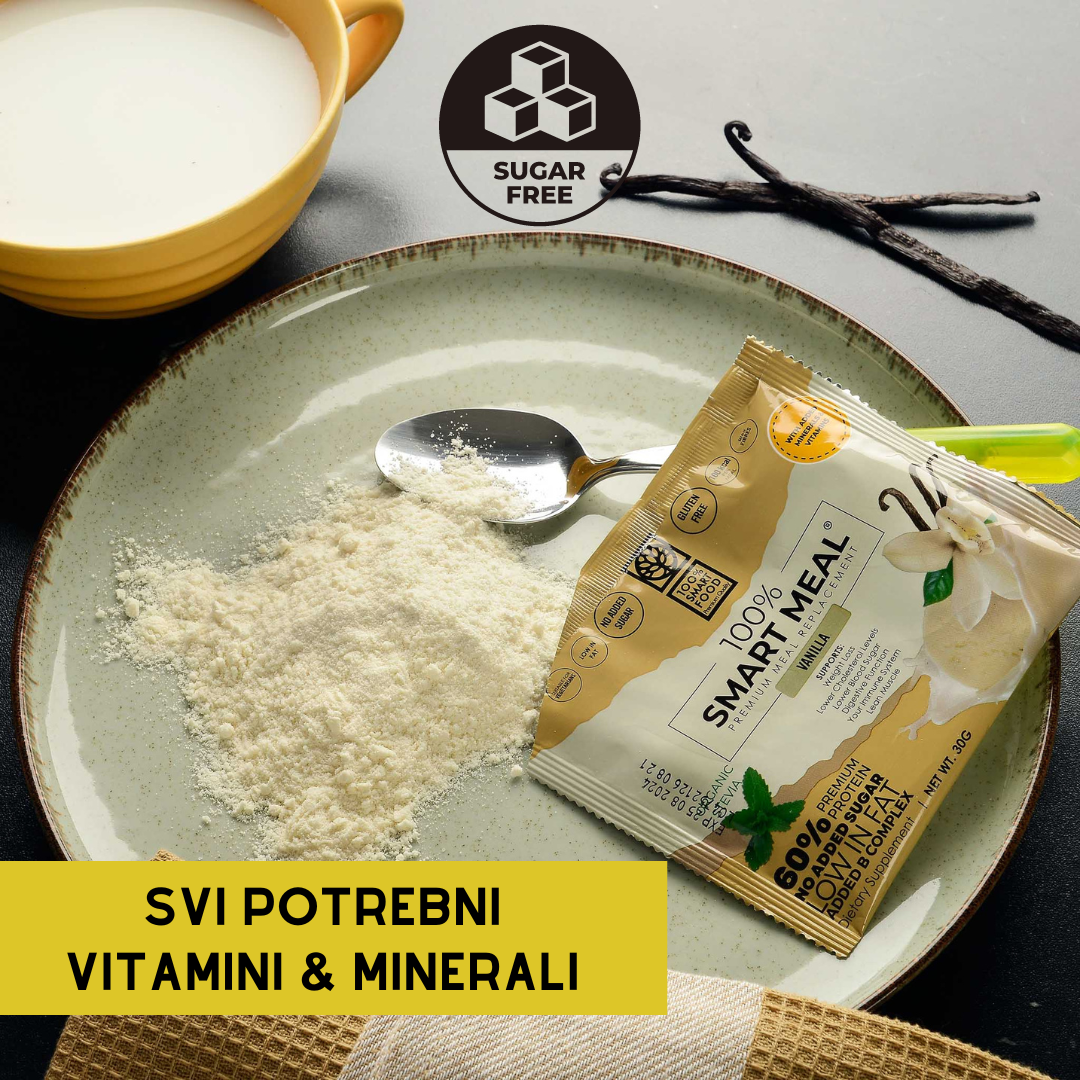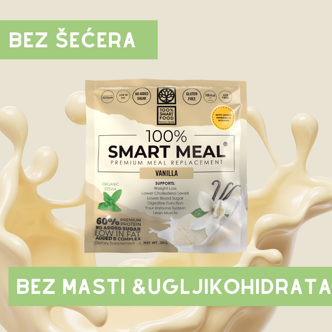 100% Smart Meal je ukusan i nutritivno uravnotežen proteinski obrok u praktičnom pakiranju za potrošače koji žele kombinirati odličan okus, kvalitetnu prehranu i praktičnost “on-the-go” formata. Svaki obrok sadrži pažljivo odabrane makronutrijente, uključujući visok udio proteina i uravnoteženu količinu ugljikohidrata i masti, što ga čini idealnim izborom kao zdravi međuobrok, zamjenski obrok ili dodatak dijetnim i fitness planovima.